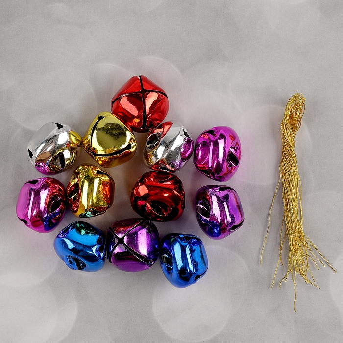 Бубенчики, набор 12 шт., размер 1 шт. — 2,5 × 2,5 см, цвет красный, жёлтый, розовый, синий, серебряный