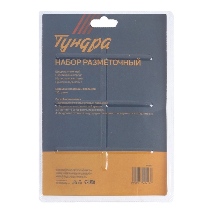 Набор разметочный ТУНДРА, шнур малярный 15 м, красящий порошок 110 г, синий