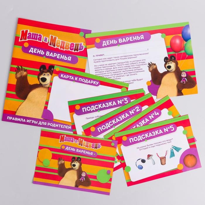 Квест по поиску подарка, игра "День варенья", Маша и Медведь