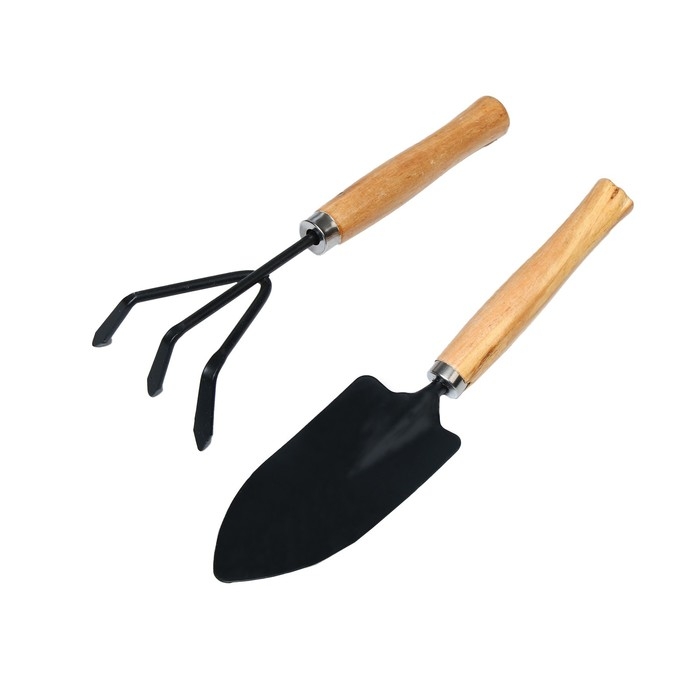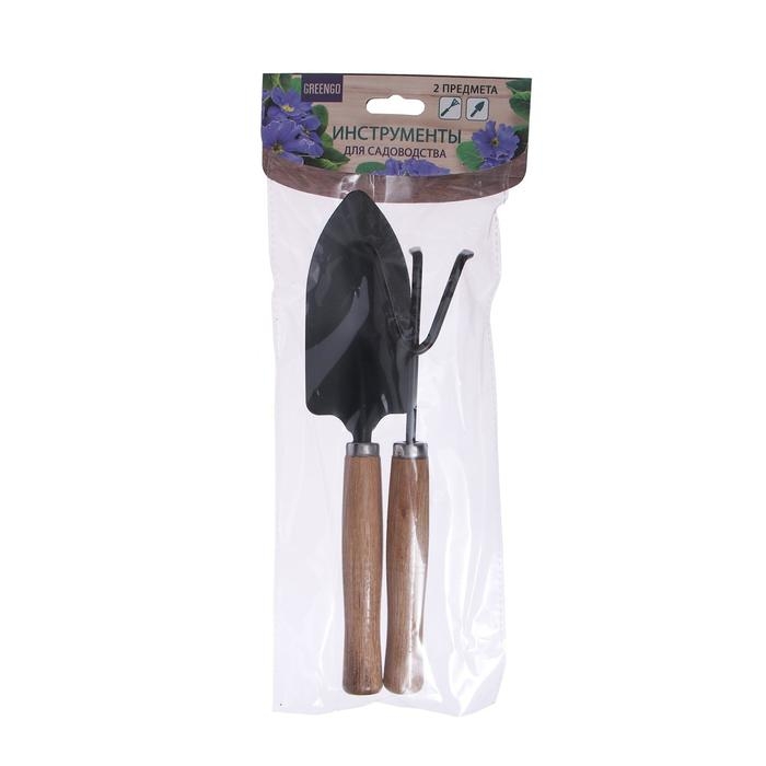 Набор садового инструмента, 2 предмета: рыхлитель, совок, длина 26 см, деревянные ручки, Greengo