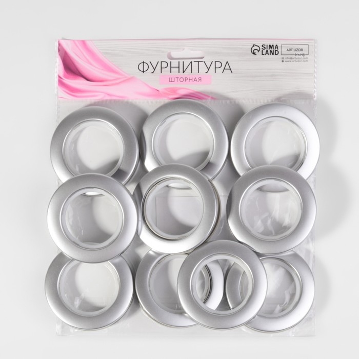 Люверсы для штор, d = 4,3/6,5 см, 10 шт, цвет серебряный