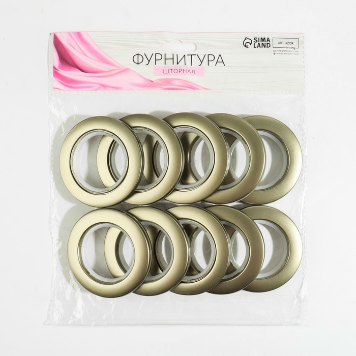 Люверсы для штор, d = 4,3/6,5 см, 10 шт, цвет золотой