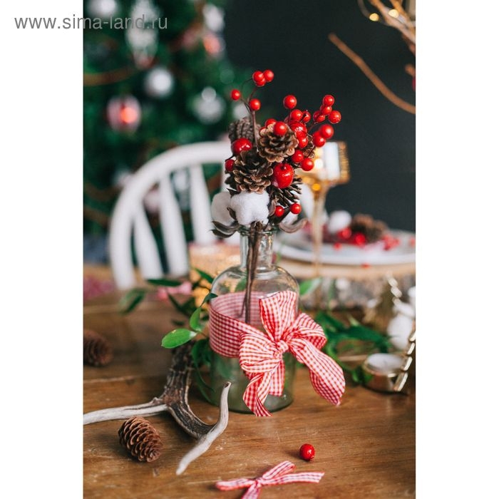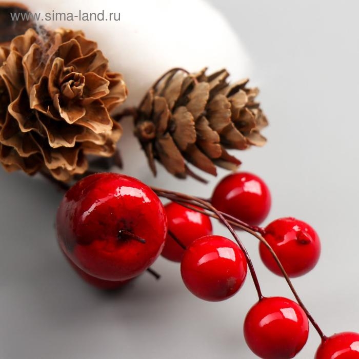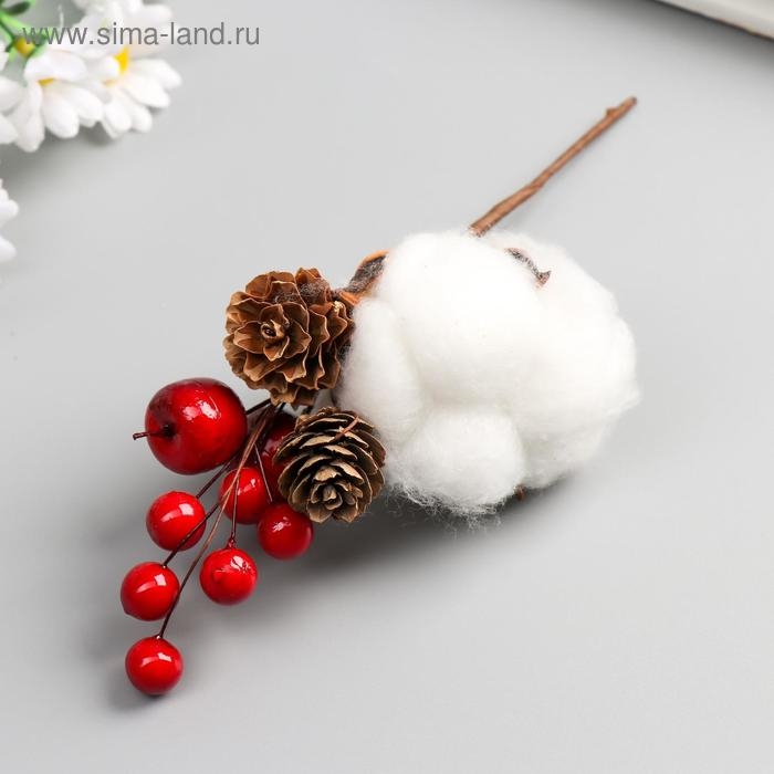 Декор для творчества "Еловая ветка с шишками, ягодками и хлопком" 29 см