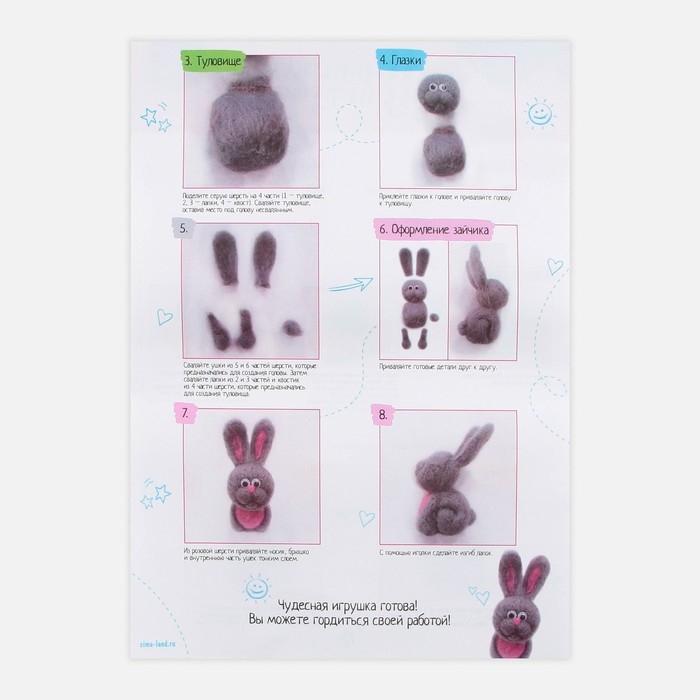 Валяние из шерсти. Игрушка «Зайчик», набор для творчества