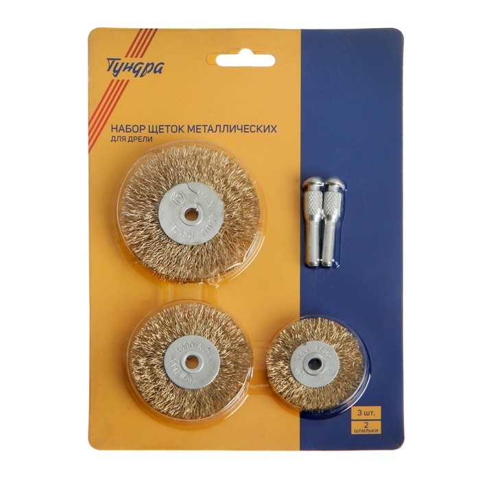 Набор щеток металлических для дрели ТУНДРА, плоские 50-63-75 мм, 3 шт. + 2 шпильки