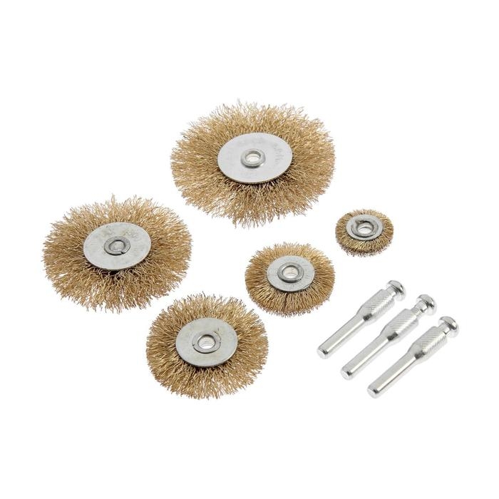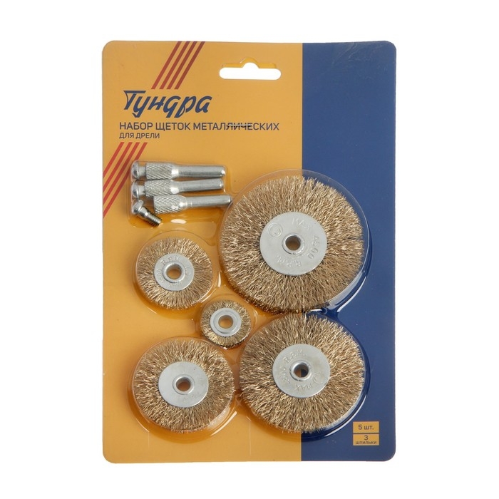 Набор щеток металлических для дрели ТУНДРА, плоские 25-38-50-63-75 мм, 5 шт. + 3 шпильки