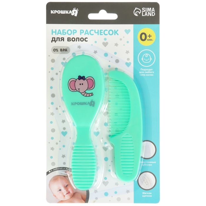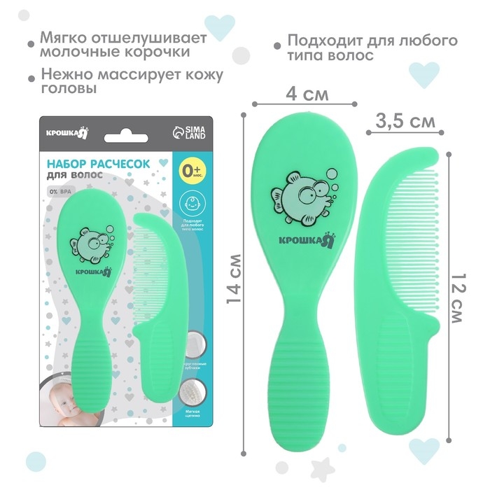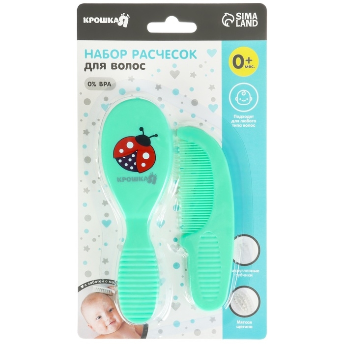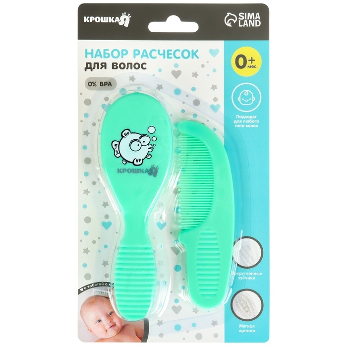 Расческа-щетка с мягкой щетиной и удобная расческа с закругленными зубчиками предназначены для малышей с первых дней жизни.