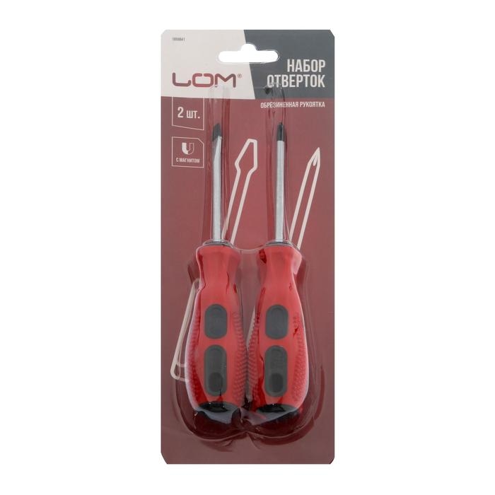 Набор отверток ЛОМ, магнит, двухкомпонентные рукоятки, PH2/SL6 х 75 мм, 2 шт.