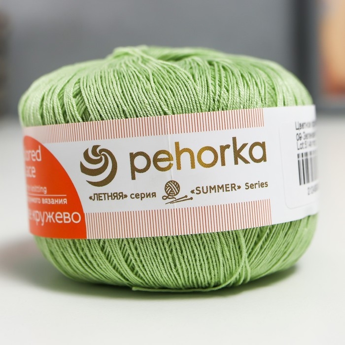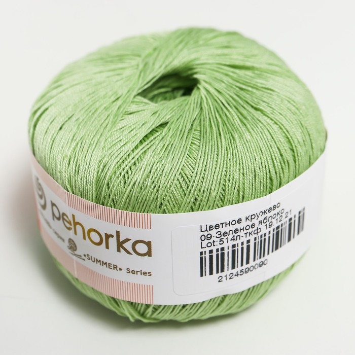 Пряжа "Цветное кружево" 100% мерсеризованный хлопок 475м/50гр (09-Зеленое яблоко)