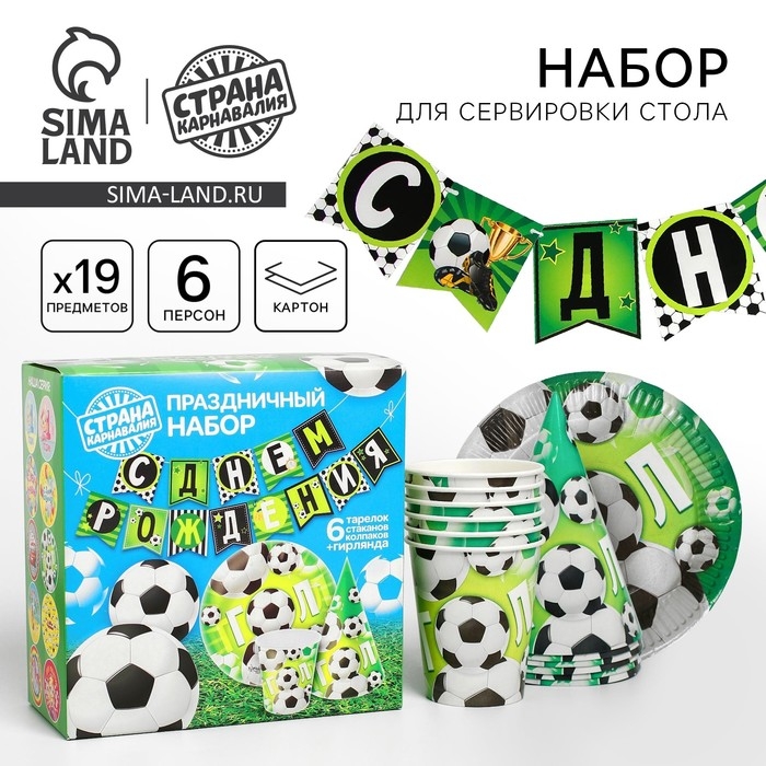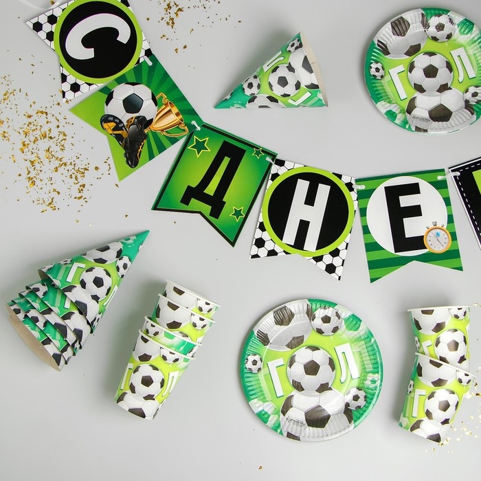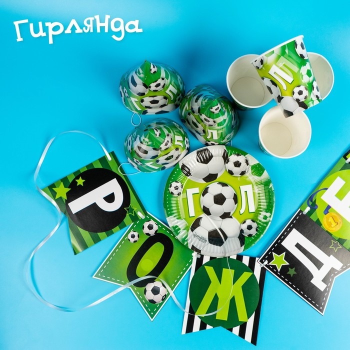 Посуда бумажная одноразовая «С днём рождения», 6 тарелок, 6 стаканов, 6 колпаков, 1 гирлянда