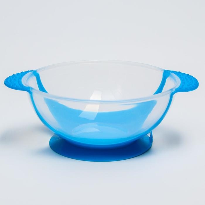 Глубокая тарелочка объёмом 350 мл снабжена нескользящими ручками и присоской для надёжной фиксации на столе.