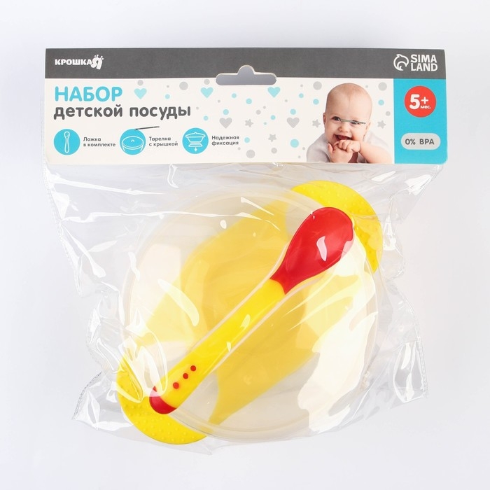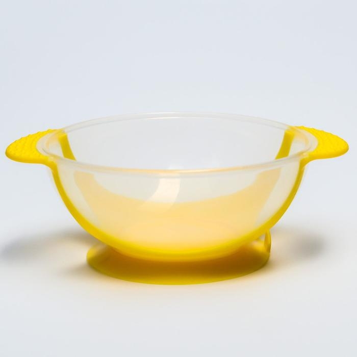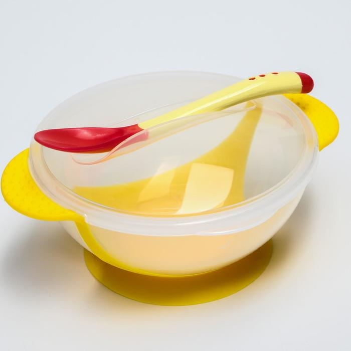 Набор для кормления, 3 предмета: миска 350 мл на присоске, крышка, термоложка, цвет жёлтый