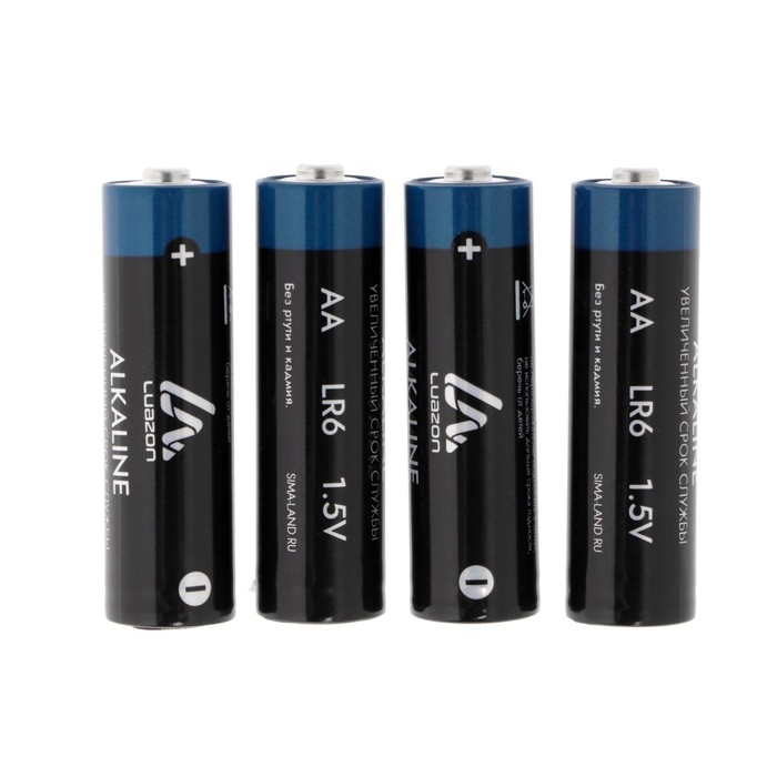 Батарейка алкалиновая (щелочная) Luazon, AA, LR6, спайка, 4 шт