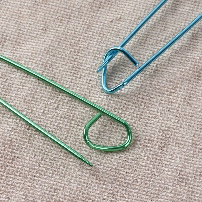 Вспомогательные булавки для вязания применяются для снятия со спицы незакрытых петель вязаного полотна, временно не участвующих в создании узора.