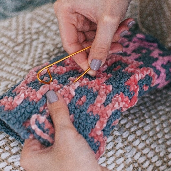 Скиньте петли на булавку и закройте её. Так они будут надёжно закреплены до тех пор, пока снова не понадобятся в работе.