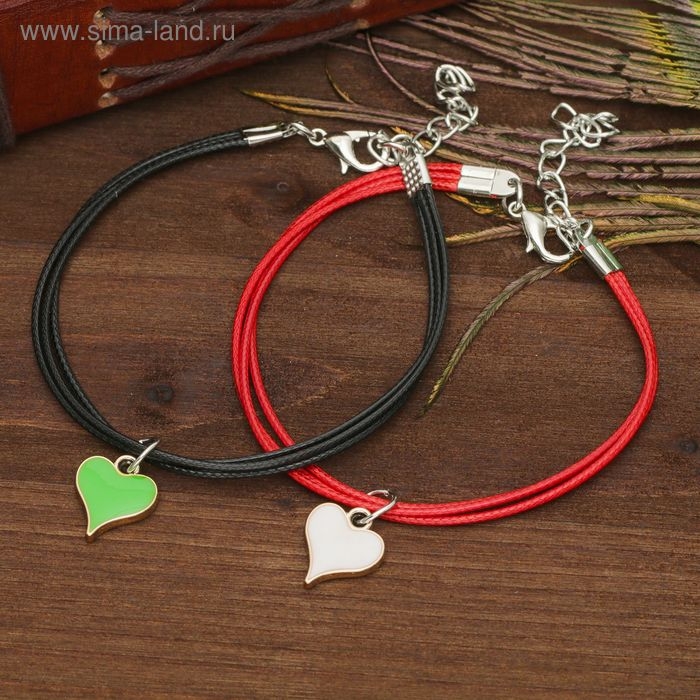 Браслеты «Неразлучники» сердце, цвет чёрно-красный, L=17 см