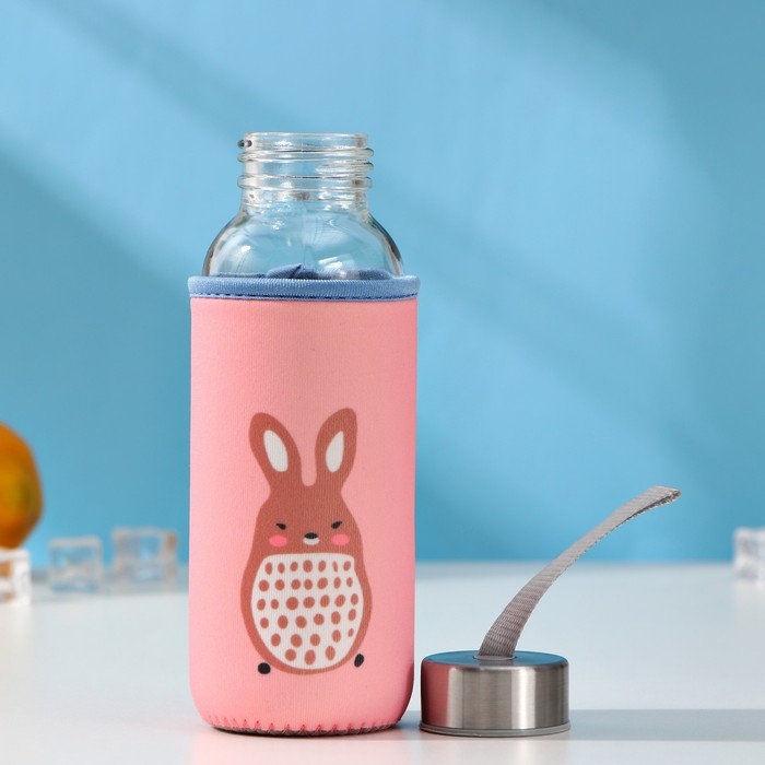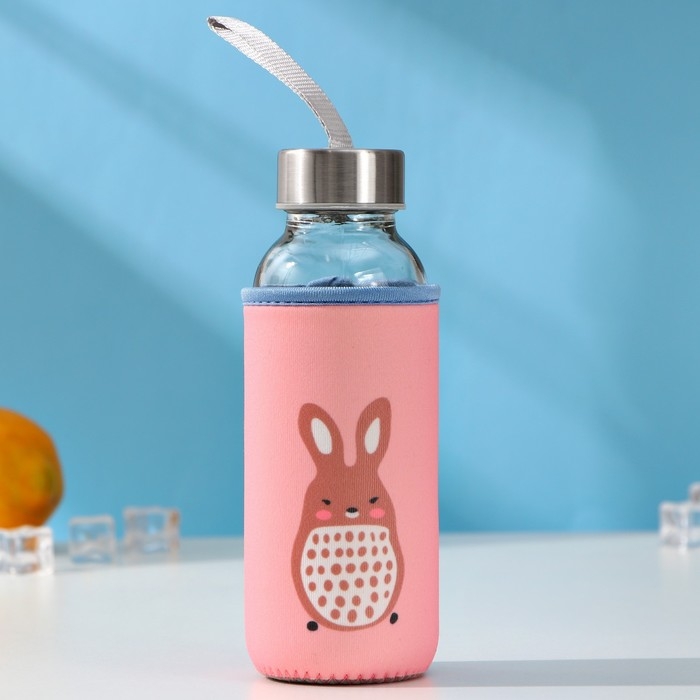 Бутылка для воды стеклянная «Ушки», 350 мл, 9,5×9×17 см, цвет МИКС