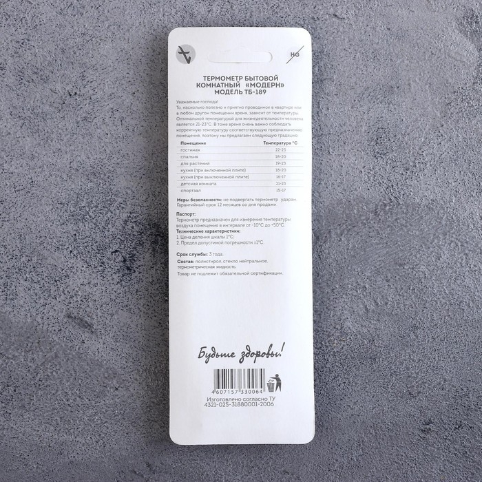 Термометр комнатный ТБ-189 "Модерн" (t -10 + 50 С) в блистере