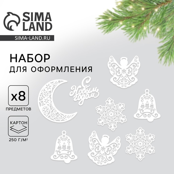 С помощью этого набора вы с легкостью оформите интерьер любого помещения (офис, класс, холл, актовый зал), наполнив его яркими красками и новогодней атмосферой. В наборе 8 предметов.