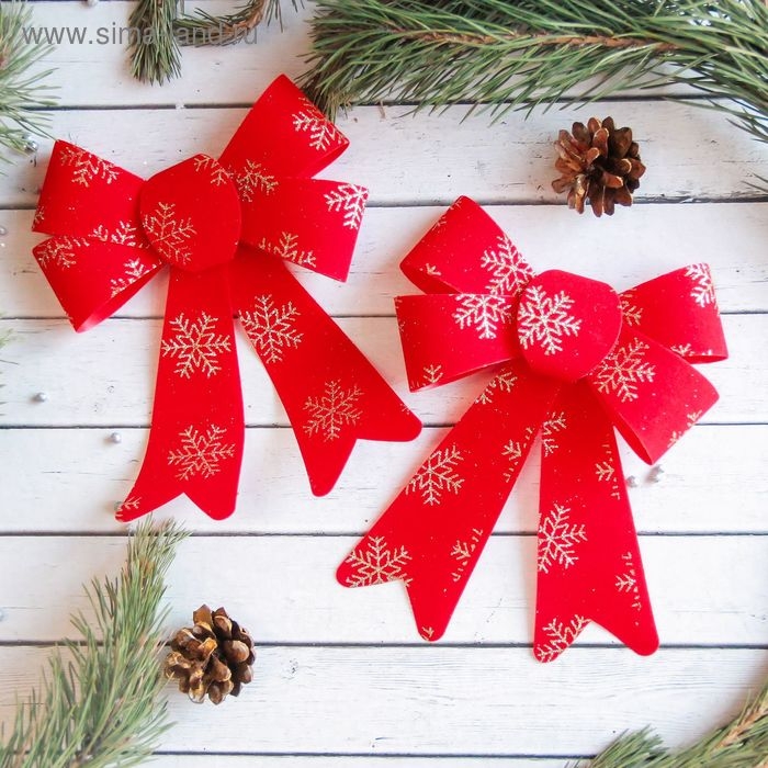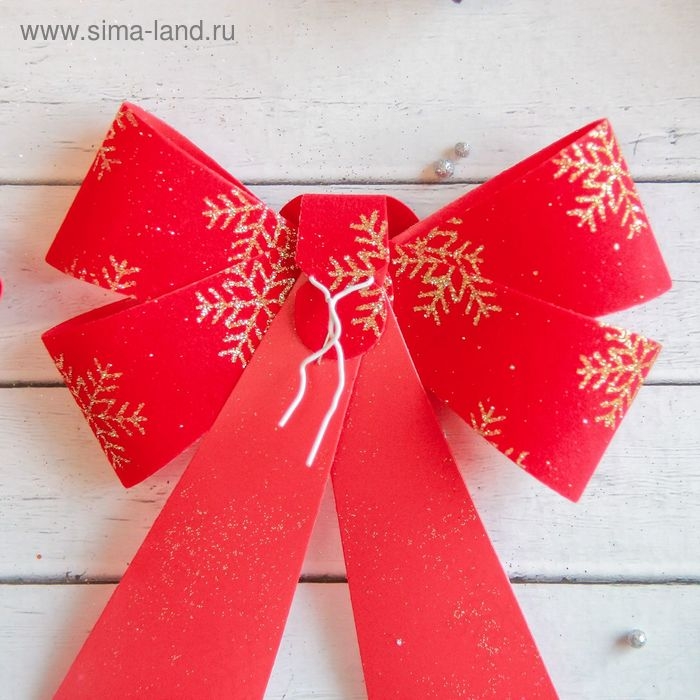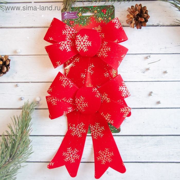 Украшение ёлочное "Бант в снежинках" (набор 2 шт) 14х16 см, красно-золотой