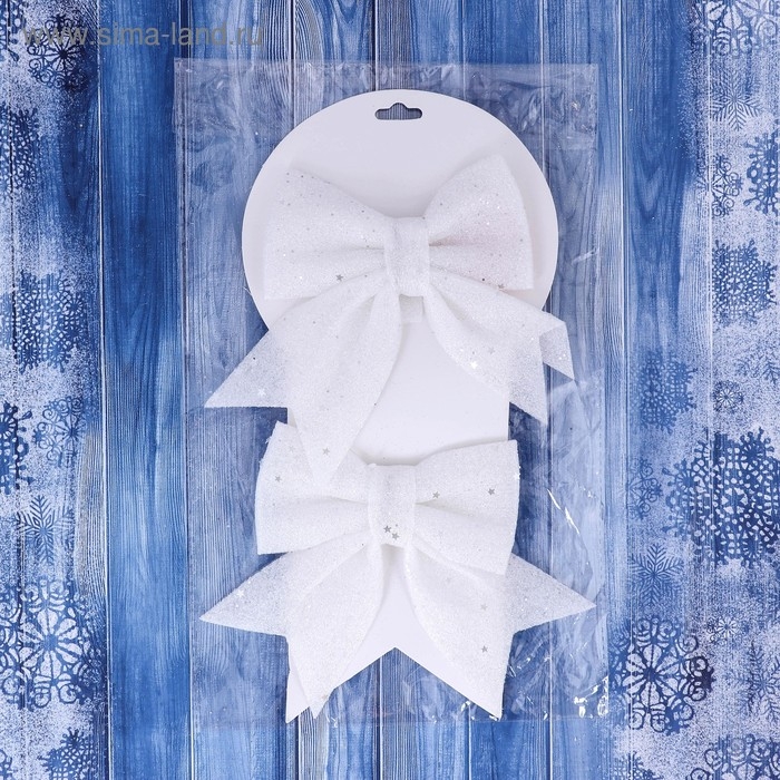 Украшение ёлочное "Бант со звёздочками" (набор 2 шт) 12х12 см, белый