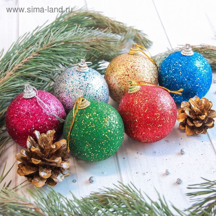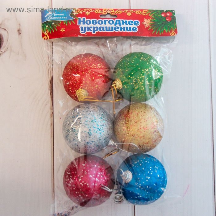 Набор шаров пластик d-5,5 см, 6 шт "Сказочный блеск" микс