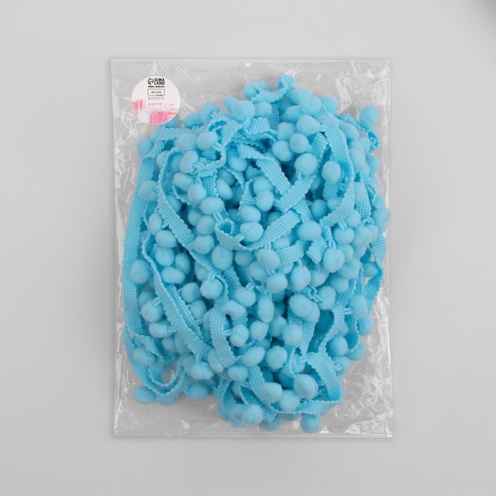 Тесьма декоративная с помпонами, 25 ± 5 мм, 9,1 ± 0,5 м, цвет голубой
