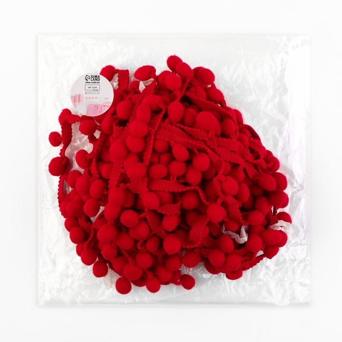 Тесьма декоративная с помпонами, 25 ± 5 мм, 9,1 ± 0,5 м, цвет красный