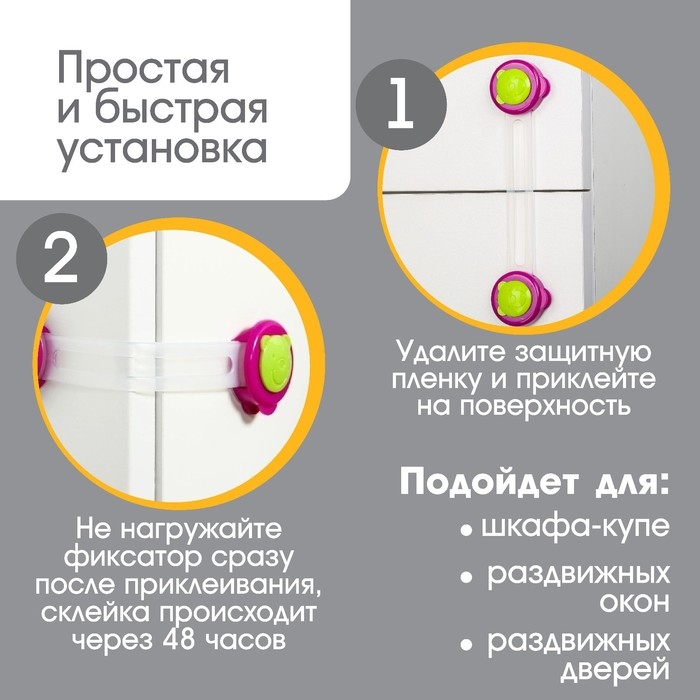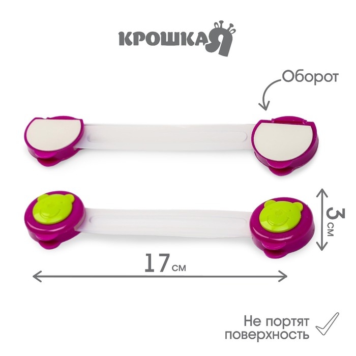 Набор блокираторов для дверей и ящиков «Мишка», универсальные, гибкие, 17 см, 2 шт., цвет бордовый/зеленый, Крошка Я