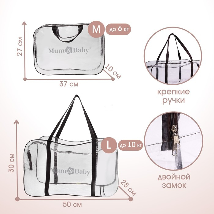 Сумка в роддом, размер 30х50х25 см, с косметичкой ПВХ100, цвет Микс (черный/серый), Mum&Baby