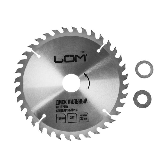 Диск пильный по дереву ЛОМ, стандартный рез, 190 х 30 мм (кольца на 20, 16), 36 зубьев