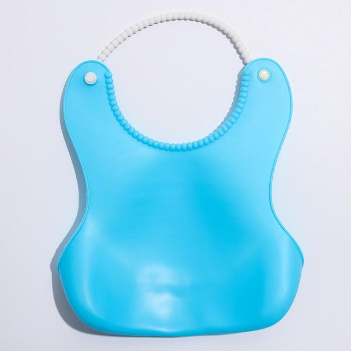 Нагрудник для кормления силиконовый с карманом, цвет голубой