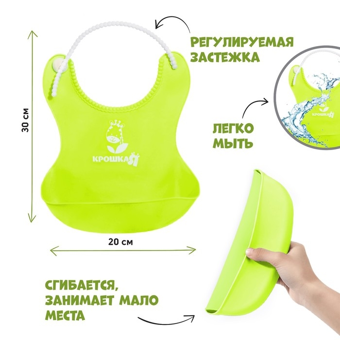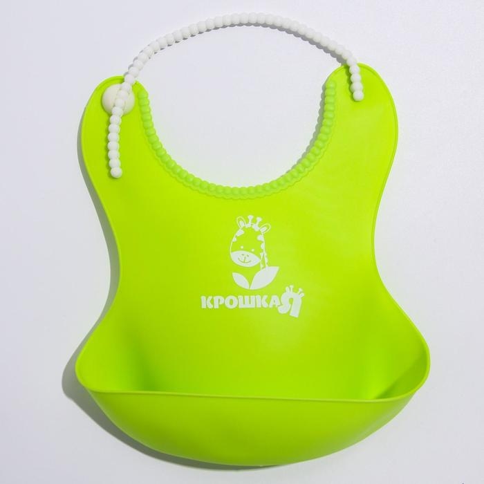 Нагрудник для кормления силиконовый с карманом, цвет зелёный