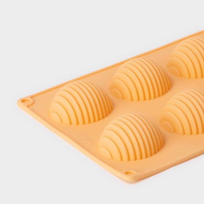 Форма для выпечки Доляна «Насекомые. Улей», силикон, 28×17 см, 8 ячеек (4,5×5,5×3 см), цвет оранжевый