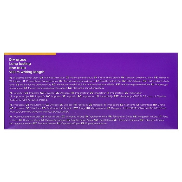 Предназначен для письма на досках с магнитно-маркерной поверхностью. Чернила на спиртовой основе легко стираются сухой губкой для досок. Закругленный пишущий узел. Ширина линии – 2 мм. Длина непрерывной линии – 900 м. Плотный колпачок с клипом предотвращает высыхание.