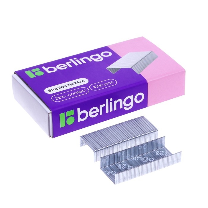 Скобы канцелярские № 24/6 Berlingo оцинкованные подойдут для скрепления листов бумаги. Скобы для степлера упакованы в картонную коробочку по 1000 штук. Меньший диаметр проволоки со специальной заточкой обеспечивает надежное сшивание до 30 листов. Канцелярские скобы изготовлены из стальной проволоки, усиленный металл с покрытием из цинка предотвращает появление коррозии. Благодаря специальному клею скобы не крошатся и не рассыпаются при падении. Количество: 1000 штук,№ скобы: 24/6,Покрытие: оцинкованное,Количество скрепляемых листов: до 30