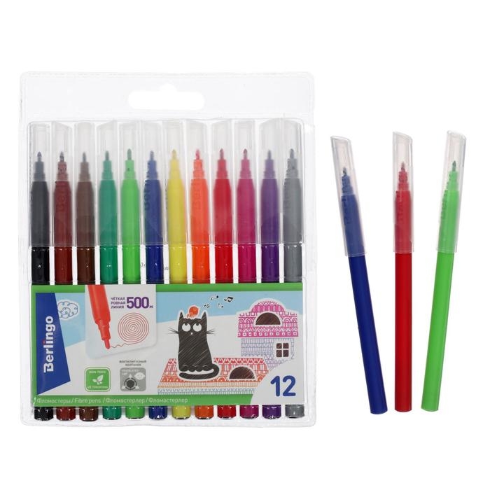 Фломастеры смываемые 12 цветов "Жил-был кот", европодвес