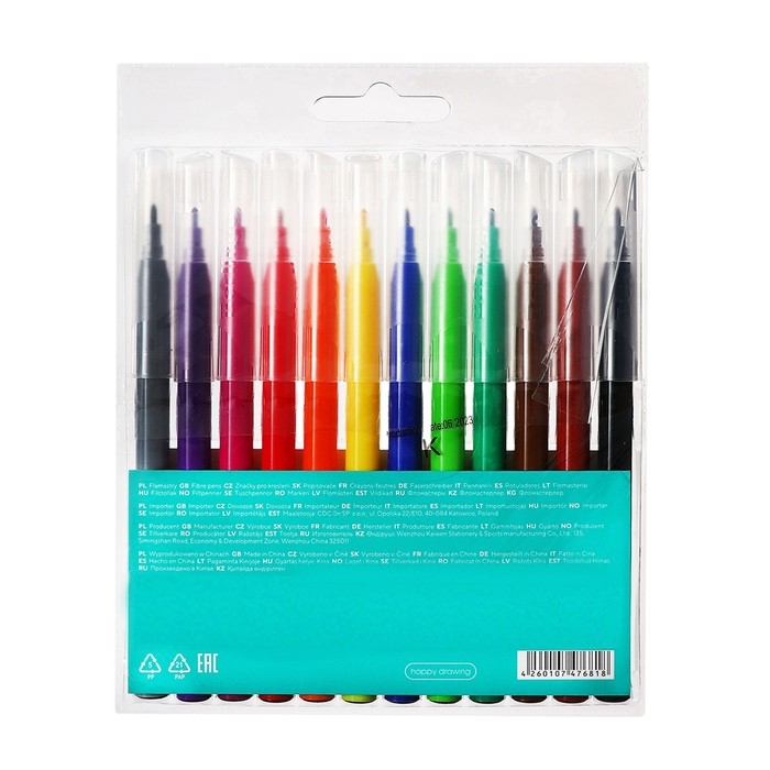 Фломастеры 12 цветов BrunoVisconti HappyColor, МИКС