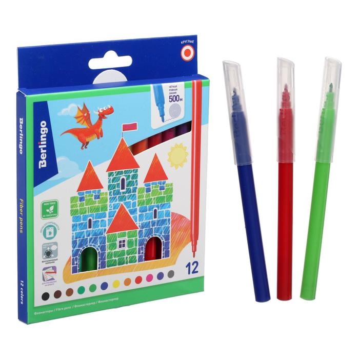 Фломастеры смываемые 12 цветов "Замки", европодвес