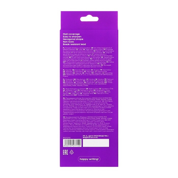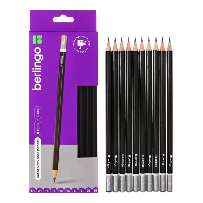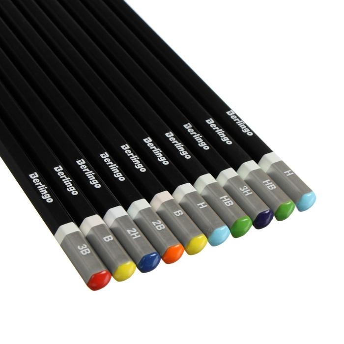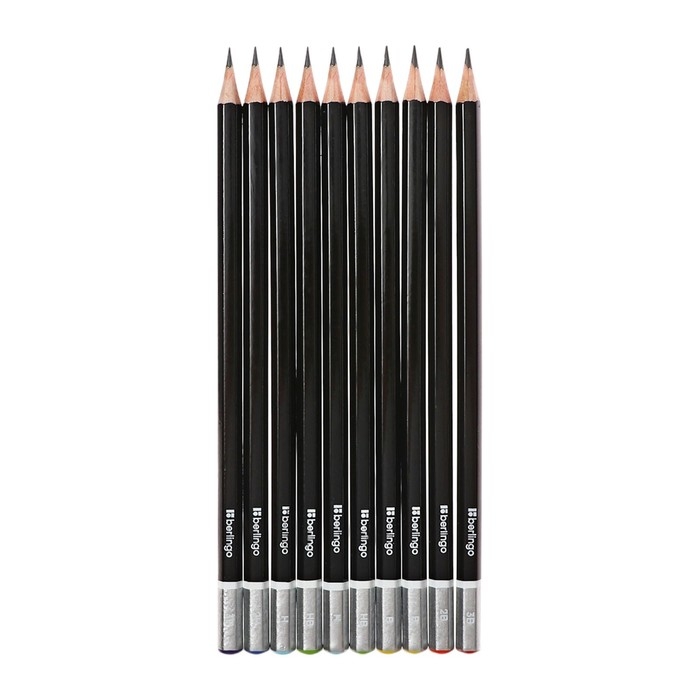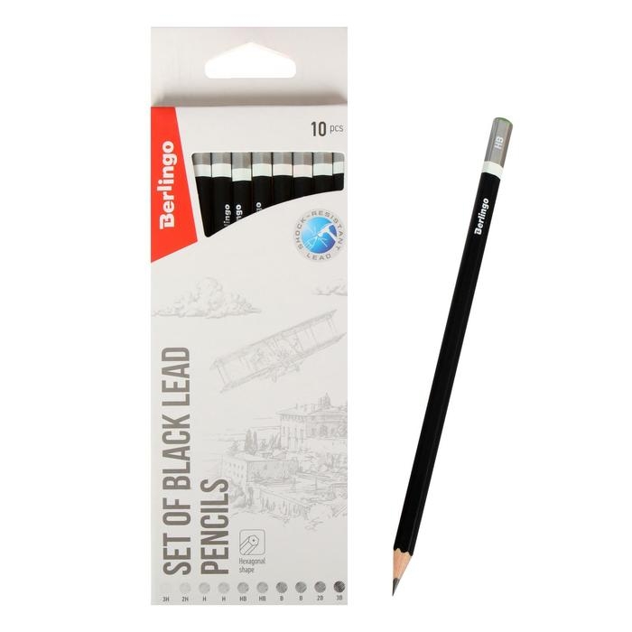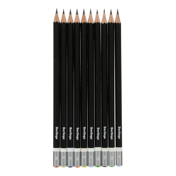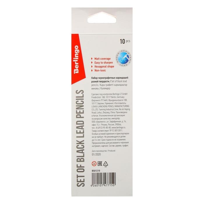 Набор карандашей чернографитных 10 штук Berlingo, 3H-3B, европодвес