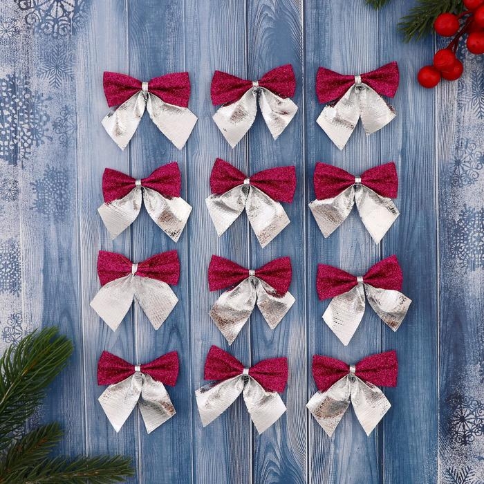 Украшение ёлочное "Бант" (набор 12 шт) 5,5х5 см, серебристо-сиреневый