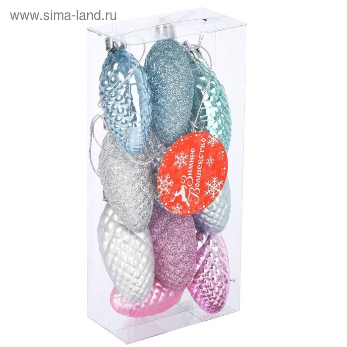 Украшение ёлочное "Шишка - морозная нежность" (набор 10 шт) 5х2,5 см, ассорти