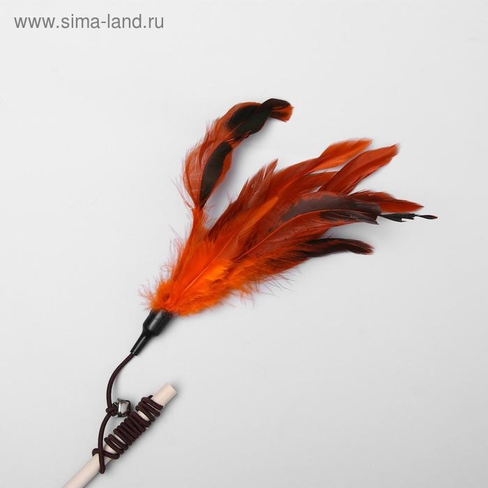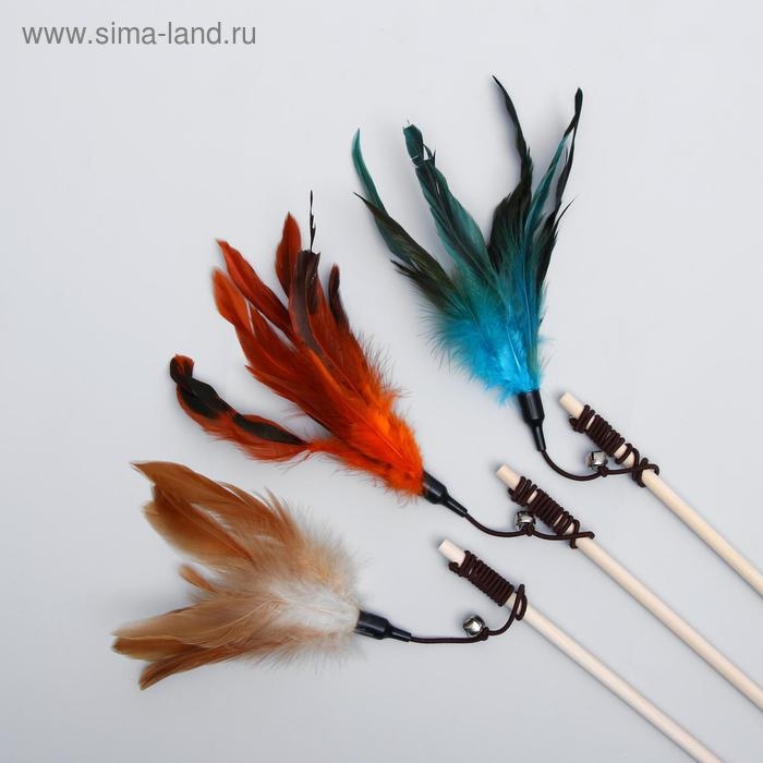 Дразнилка-удочка с перышками и бубенчиком, деревянная палочка 40 см, микс цветов