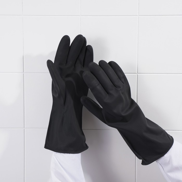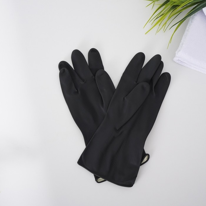 Перчатки хозяйственные латексные Доляна, размер L, химически стойкие, цвет чёрный