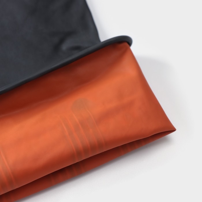 Перчатки производят из каучука — натуральной резины. Он водонепроницаем и хорошо растягивается: даже после неоднократного использования материал не теряет своих свойств.