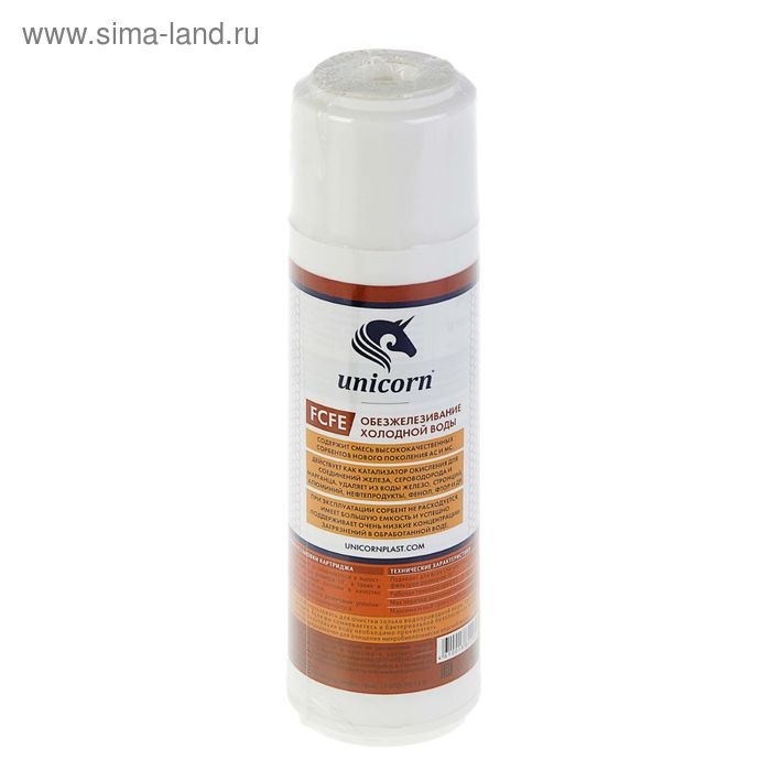 Картридж Unicorn FCFE 10"SL предназначен для обезжелезивания холодной воды. Действует как катализатор окисления для соединений железа, сероводорода и марганца. Удаляет из воды железо, стронций, алюминий, нефтепродукты, фенол, фтор и др.