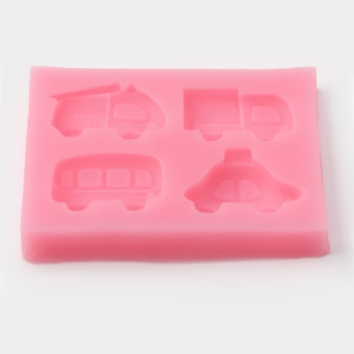 Молд для заливки Доляна «Транспорт», силикон, 4 ячейки, 8×6.5×1.1 см, розовый