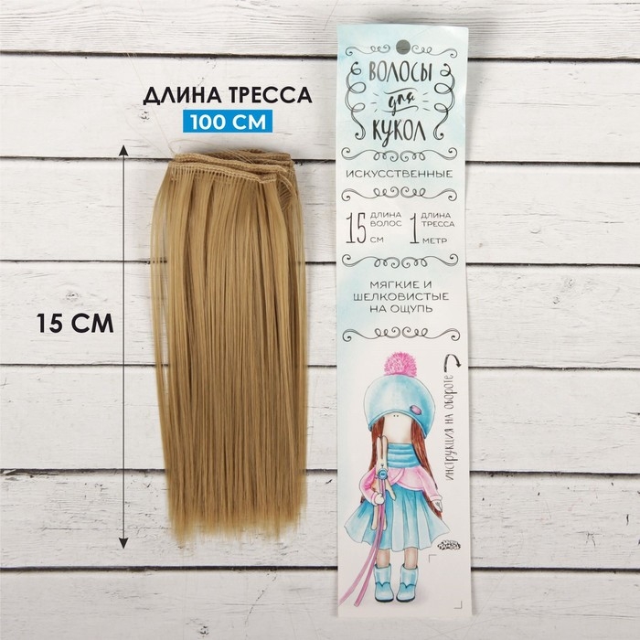 Волосы - тресс для кукол «Прямые» длина волос: 15 см, ширина:100 см, цвет № 15