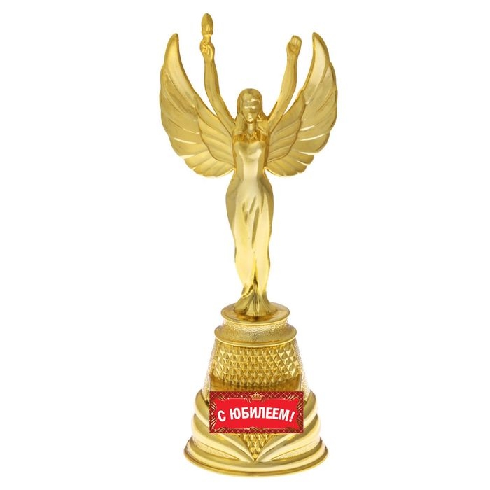Кубок наградная фигура Ника «С юбилеем», пластик, золото, 19,5 х 7,3 см выполнена из пластика и дополнена вкладышем с полноцветной печатью.
