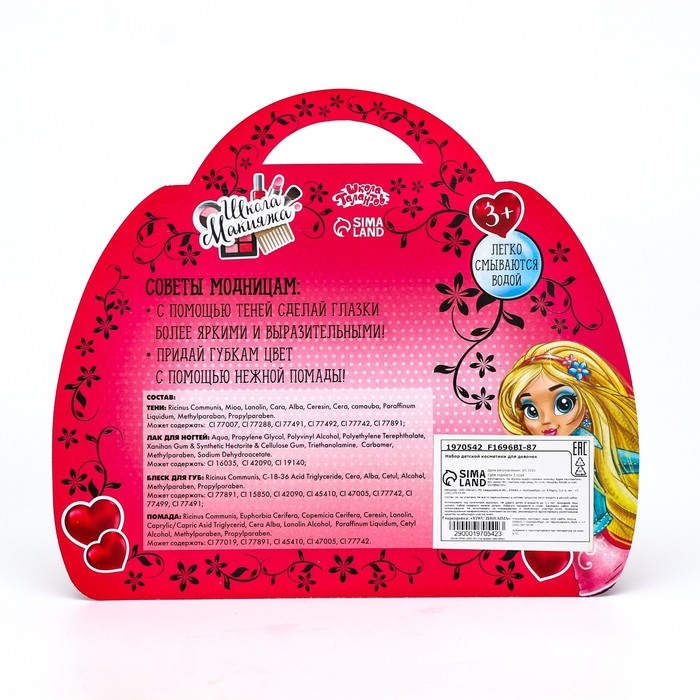 Детская косметика «Школа макияжа» позволит ребёнку экспериментировать со стилем. Набор поможет девочке подобрать оптимальные варианты для вечерних и дневных образов. Косметика без труда смывается водой или с помощью ватного диска и безопасна для детской кожи.